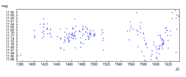 | 14 | VSX J030436.1+334217 | Perseus | 03 04 36.15 +33 42 17.2 | SR | 8.85 - 9.4 R1 | 65 | More | |