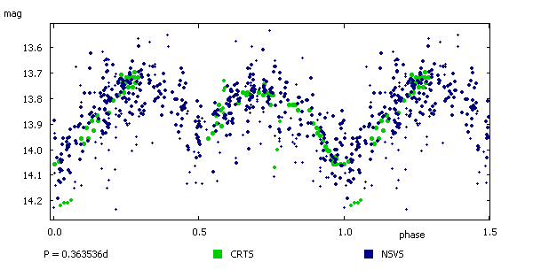 | 13 | VSX J092513.8+642448 | Ursa Major | 09 25 13.87 +64 24 48.8 | EW | 12.72 - 13.15 R1 | 0.36313 | More | |