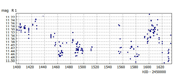 | 14 | VSX J030436.1+334217 | Perseus | 03 04 36.15 +33 42 17.2 | SR | 8.85 - 9.4 R1 | 65 | More | |