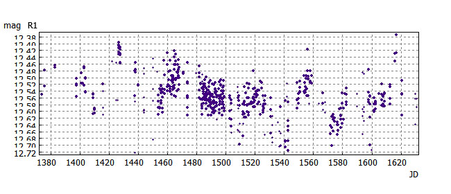 | 14 | VSX J030436.1+334217 | Perseus | 03 04 36.15 +33 42 17.2 | SR | 8.85 - 9.4 R1 | 65 | More | |