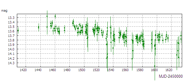 | 13 | VSX J045948.5+021349 | Orion | 04 59 48.56 +02 13 49.1 | EW | 13.75 - 14.1 V | 0.32329 | More | |