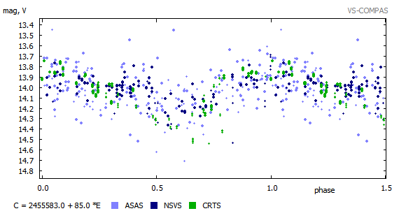 | 14 | VSX J125449.4-022030 | Virgo | 12 54 49.42 -02 20 30.2 | EW/RS | 13.82 - 14.26 V | 0.31235 | More | |