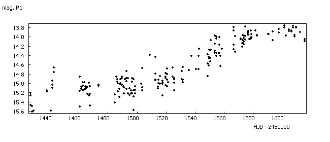 | 41 | NSVS 1535984 | Cassiopeia | 23 43 25.26 +58 48 25.3 | SR | 12.8 - 13.5 R1 | 64.8 d | More | |