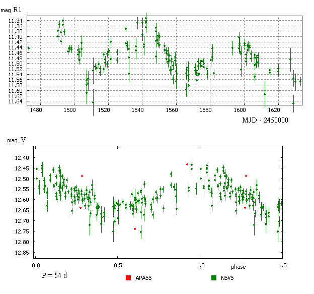 | 19 | NSVS 4460180 | Auriga | 05 49 21.06 +45 01 57.0 | SR | 12.4 - 12.75 V | 54 | More | |