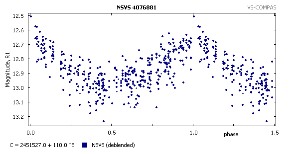 | 55 | NSVS 4343500 | Perseus | 04 41 48.94 +43 14 50.7 | SR | 12.6 - 12.95 R1 | 151 | More | |
