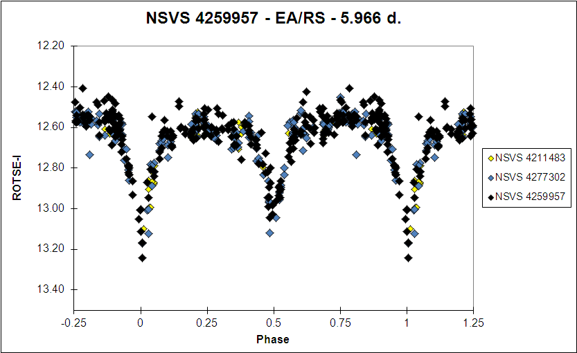 | 44 | NSVS 4259957 | Perseus | 04 20 40.67 +44 52 34.7 | EA/RS | 12.55 - 13.15 R1 | 5.966 d | More | |