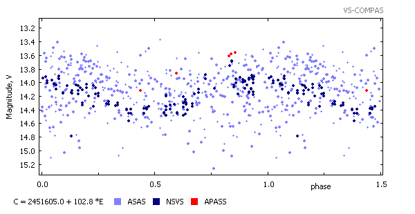 | Period: 110.8 d | Discoverer: Andrey Prokopovich, Siarhey Hadon, VS-COMPAS Team, Sebastian Otero, VSX Team | ||||||||||||||||||||||||