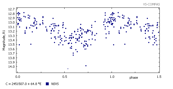 | 13 | NSVS 3761771 | Cassiopeia | 01 00 21.03 +48 54 19.5 | SR | 12.9 - 13.2 R1 | 60.6 d | More | |